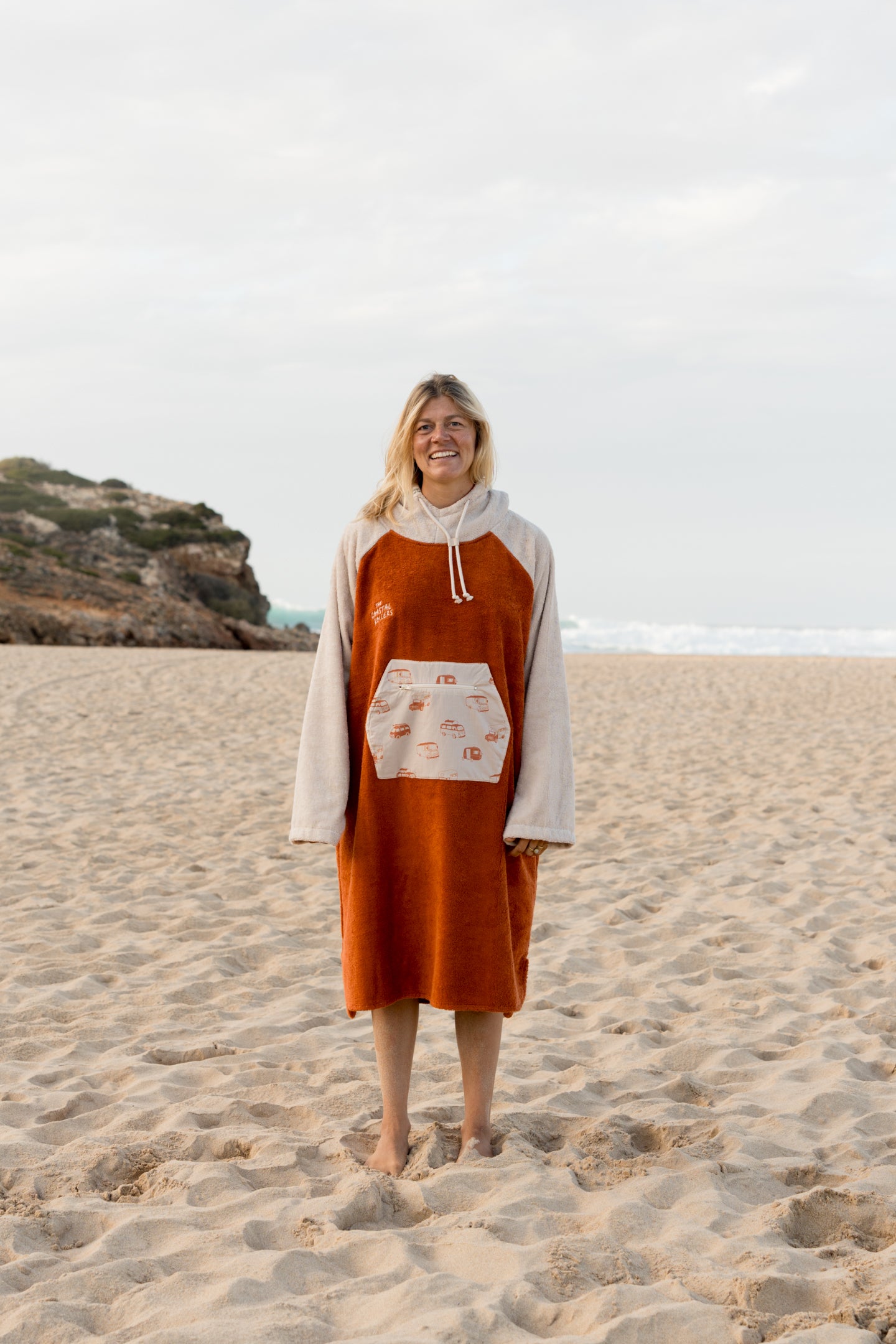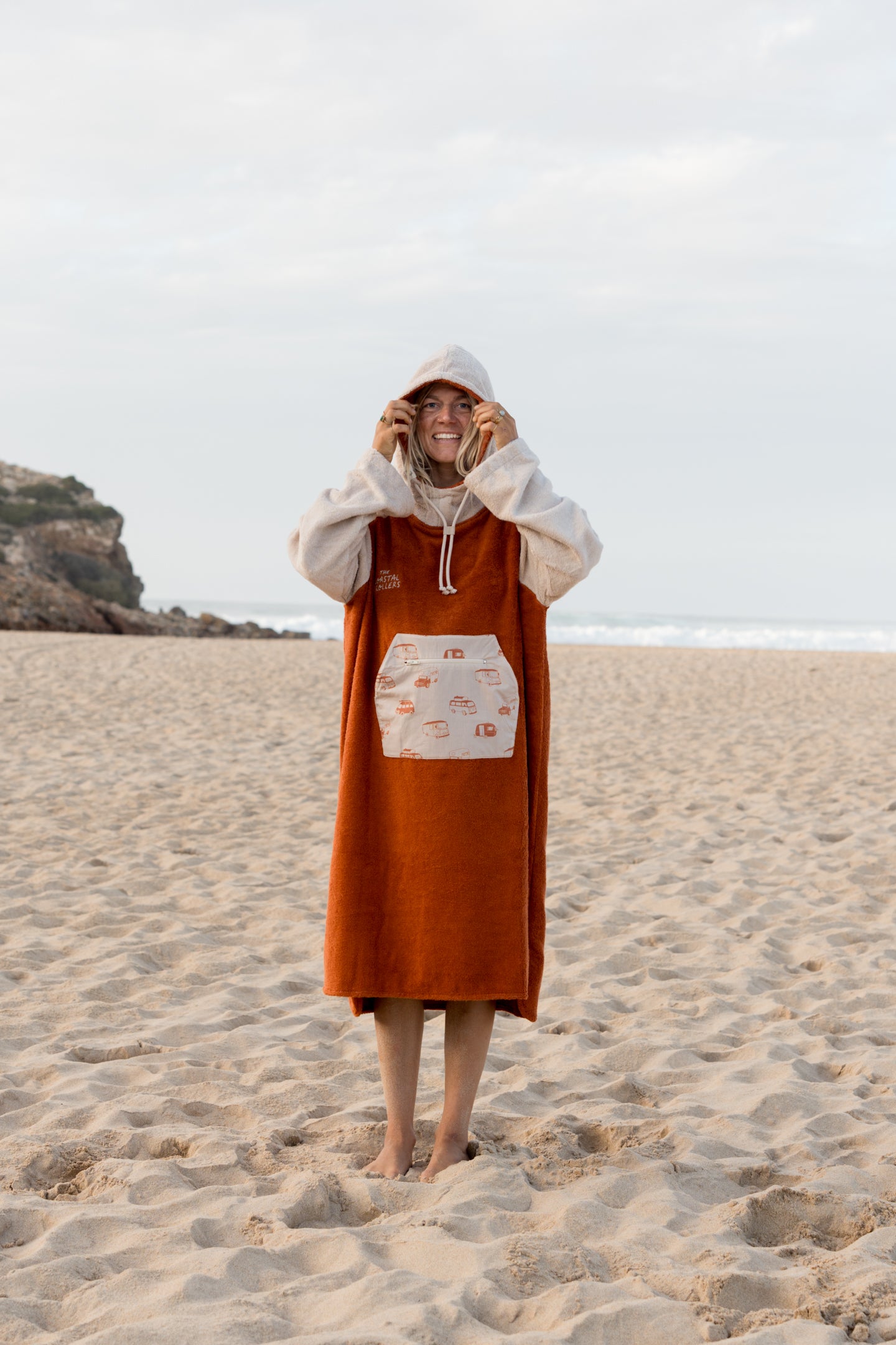 Ob du morgens am See aus dem Van springst oder abends am Lagerfeuer chillst – dieser Poncho aus weicher Bio-Baumwolle (natürlich nachhaltig in Portugal hergestellt) hält dich warm und sieht dabei auch noch mega aus. Die Kängurutasche bietet Platz für Snacks oder kalte Hände, und die extra Reißverschlusstasche sorgt dafür, dass deine Wertsachen immer sicher verstaut sind.